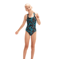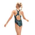 Make a statement in Boom logo prints. Celebrating the Speedo brand, this sporty girls’ Medalist swimsuit showcases the iconic Speedo Boom logo in a ‘shattered’ print design with intense shades of azure blue and black. Ideal for regular pool sessions, the medalist design aids shoulder movement and flexibility so young swimmers can cruise through their swim without feeling held back. The suit is also fully lined at the front for comfort and modesty during their swim. Soft and stretchy fabric make it ideal for regular swimming, while shape-retaining Speedo Endurance10 fabric with CREORA® HighClo™ ensures it fits like new for longer.